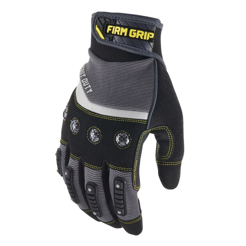 Firm Grip Heavy Duty gloves are reinforced in all the right places to keep you protected in the shop or on the jobsite during high-impact tasks. Providing complete back-of-hand protection with hard knuckle molds and rubber finger panels, these gloves also feature a synthetic suede palm with a textured grip for added control and vibration absorption. Firm Grip Heavy Duty gloves are essential for demolition, masonry work, operating power tools, roofing and more.