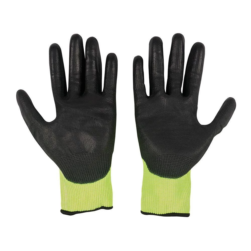 The Milwaukee Large High-Visibility Cut Level 3 Polyurethane Dipped Gloves are designed to provide a Better Fit and Better Protection. These hi-vis cut resistant gloves have a reinforced nitrile coating between the thumb and index finger for enhanced durability in high wear points. The cut resistant gloves feature SMARTSWIPE touchscreen compatible fingertips. The cut level 3 gloves are knit with 15-Gauge for better dexterity when handling small objects. These breathable gloves are lightweight for comfortable all day wear. Milwaukee offers large hi-vis gloves so users can find their perfect fit. Milwaukee High Visibility Gloves feature color ID bands for easy identification of cut levels.