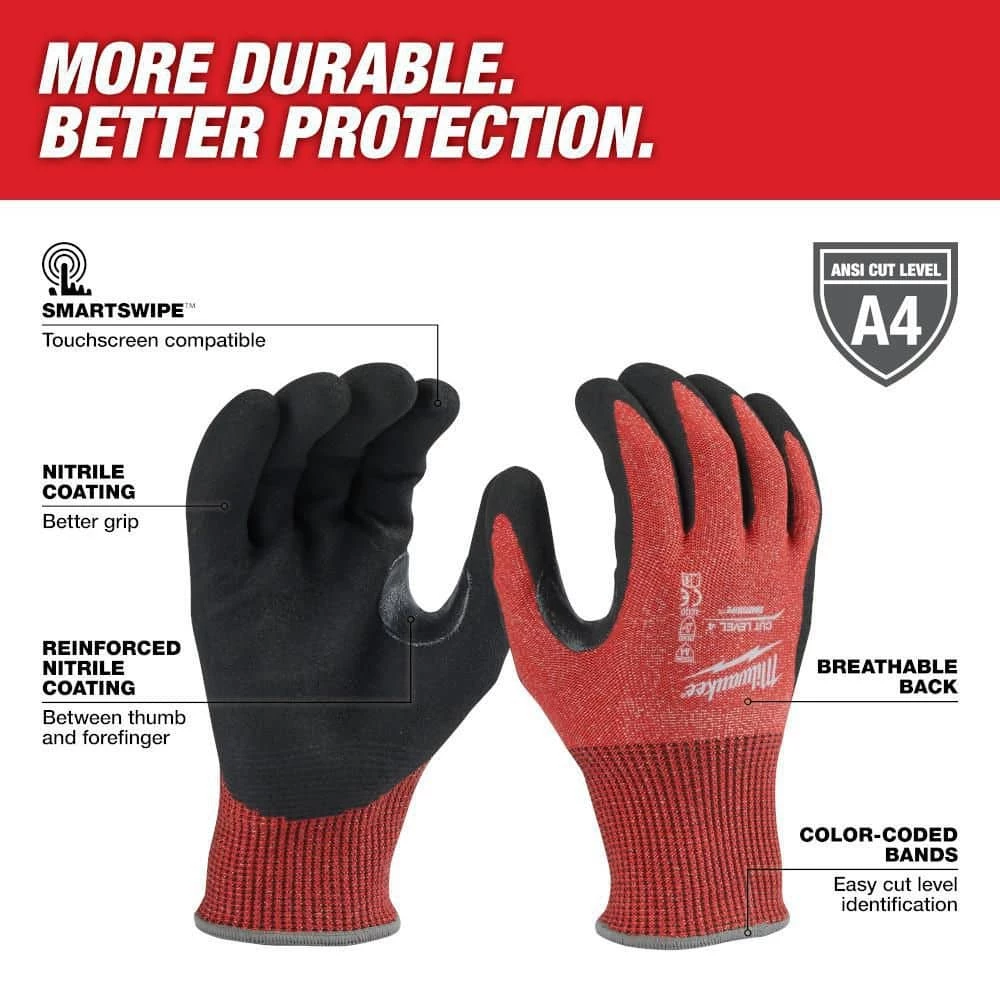 - Includes: (1) cut level 4 nitrile dipped gloves – L (48-22-8947)