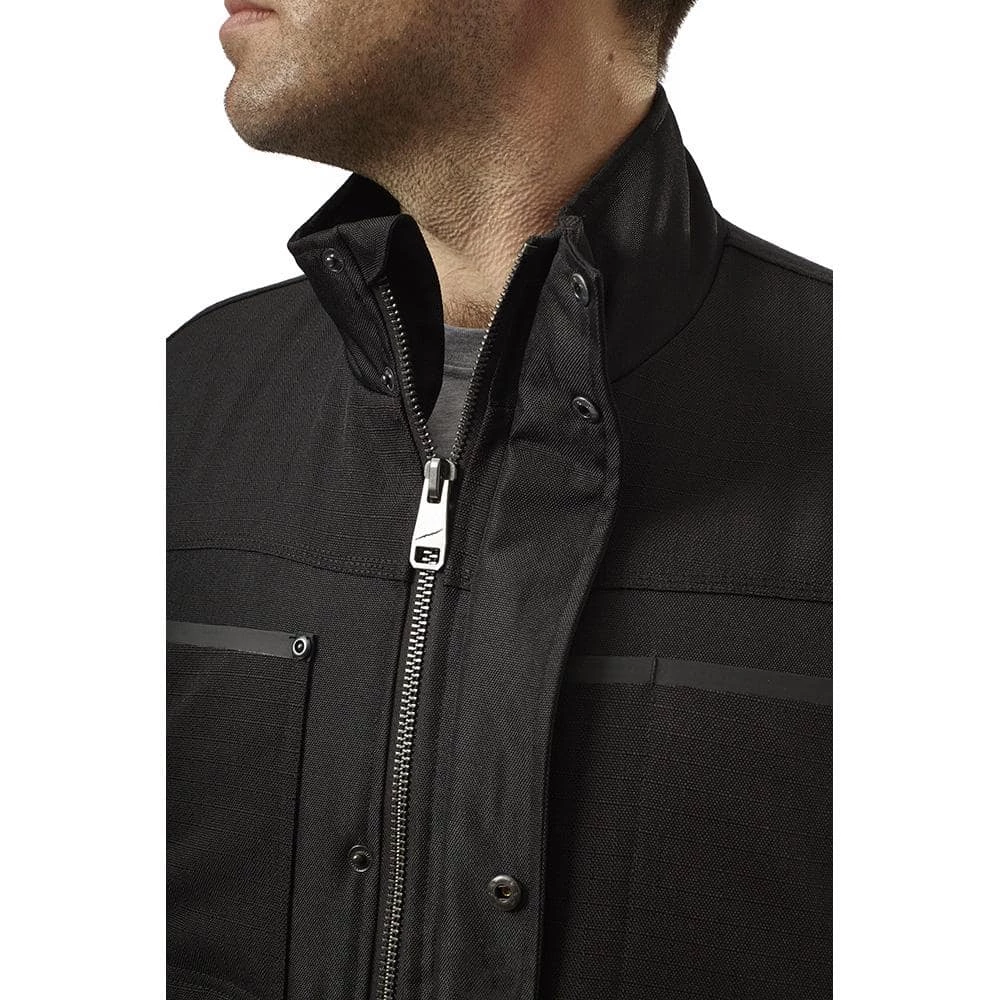 Engineered to survive the jobsite and outlast the elements, the Milwaukee GRIDIRON Hooded Traditional Jacket is built for tradesman who cant let cold slow them down. Focused on providing reinforcement in areas where traditional work wear fails, GRIDIRON Ripstop Polyester Outlasts 12 oz. cotton duck by 3x against abrasion and tearing. FREEFLEX Stretch Panels across the back combined with lighter, more durable materials maximize mobility by reducing bulk and eliminating break in time. NO DAYS OFF weather protection provides wind and water resistance and combines with high loft insulation to combat the most extreme weather conditions.