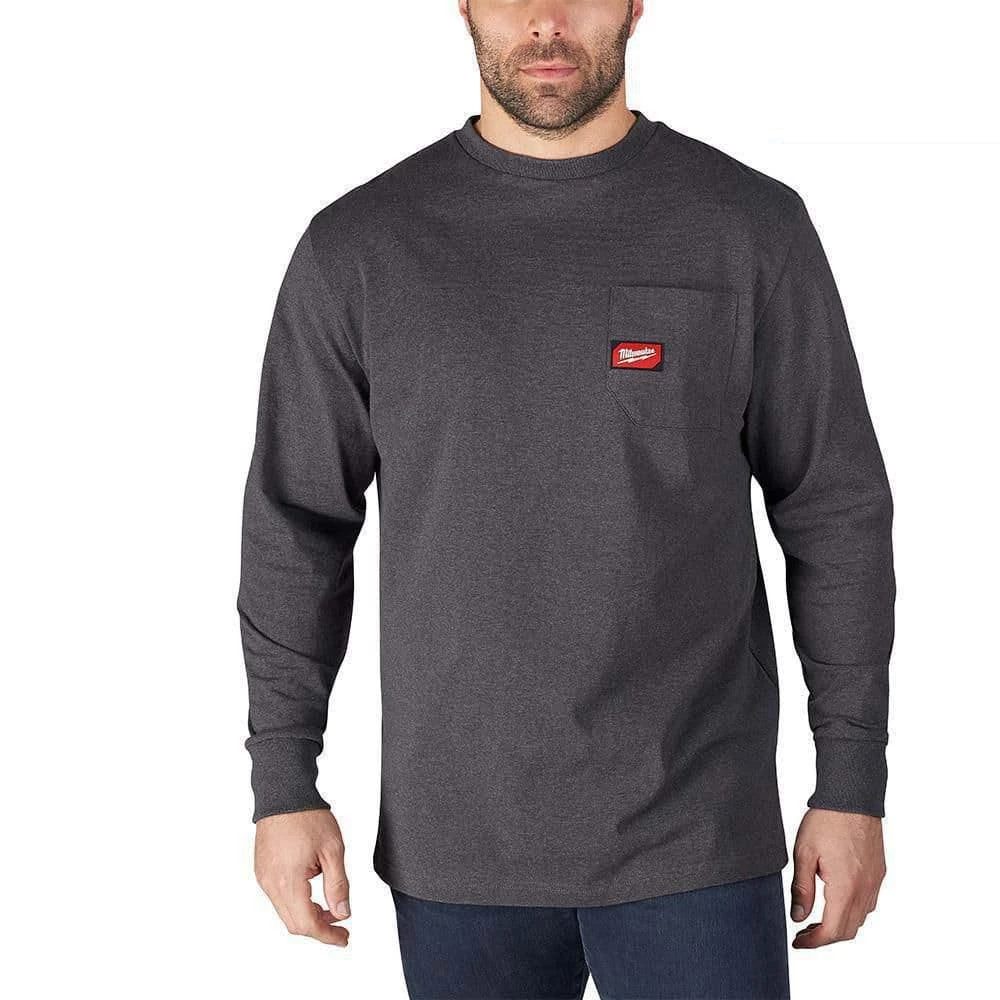 Milwaukee Men’s Small Gray Heavy-Duty Cotton/Polyester Long-Sleeve Pocket T-Shirt
