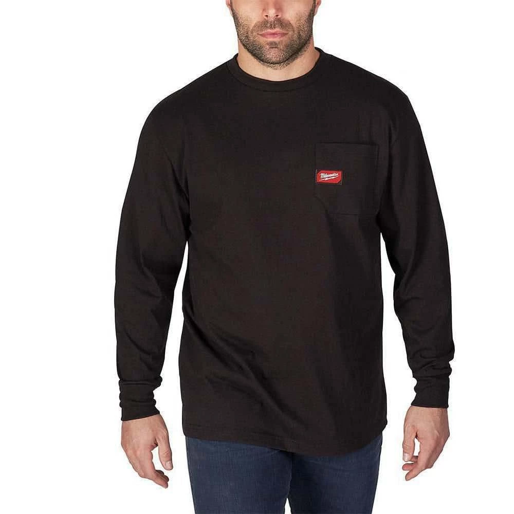 The MILWAUKEE Black Long Sleeve Heavy-Duty Pocket T-Shirts are made from durable, breathable fabric for all-day protection to outlast the job. Built with a tear- and abrasion-resistant 60/40 cotton/poly blend, these long sleeve t-shirts allow users to work hard without compromising comfort. When long days and tough conditions are the norm, users can rely on Milwaukee Heavy-Duty Pocket T-Shirts for comfortable durability that survives every jobsite. A moisture-wicking treatment makes these t-shirts great for the most demanding conditions. Get the perfect fit with t-shirt sizes ranging from small to 3X.