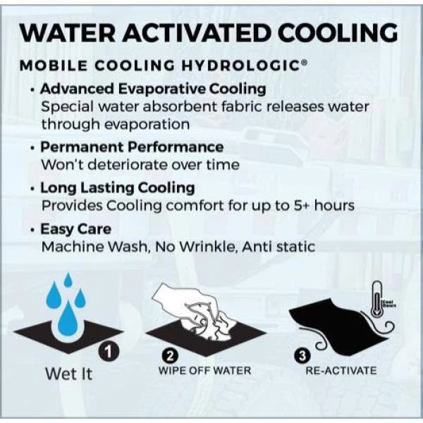 Designed to offer quick, water activated cooling, Fieldsheer’s MOBILE COOLING towel is ideal for work, the gym and many outdoor activities during the warm weather months. Just add water to the Hydrologic cooling towel and wring out or snap to immediately activate cooling effects. The light-weight Hydrologic fabric absorbs moisture efficiently, keeping you cool and dry all day long.