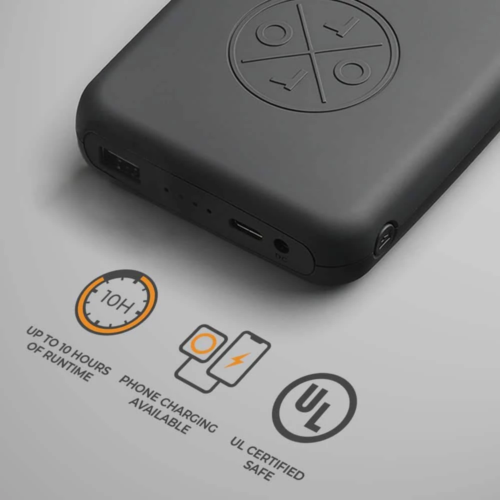 - Four carbon fiber heating elements generate heat across core body areas (collar, underneath two pockets and mid-back)