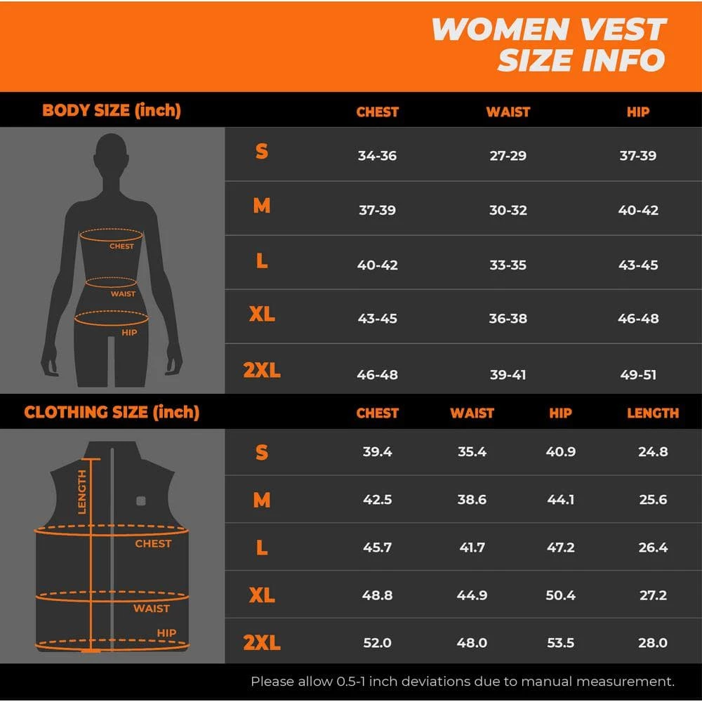 - Includes: 1x Heated vest, 1x Battery, 1x Universal charger kit, 1x Type-c cable, 1x User manual